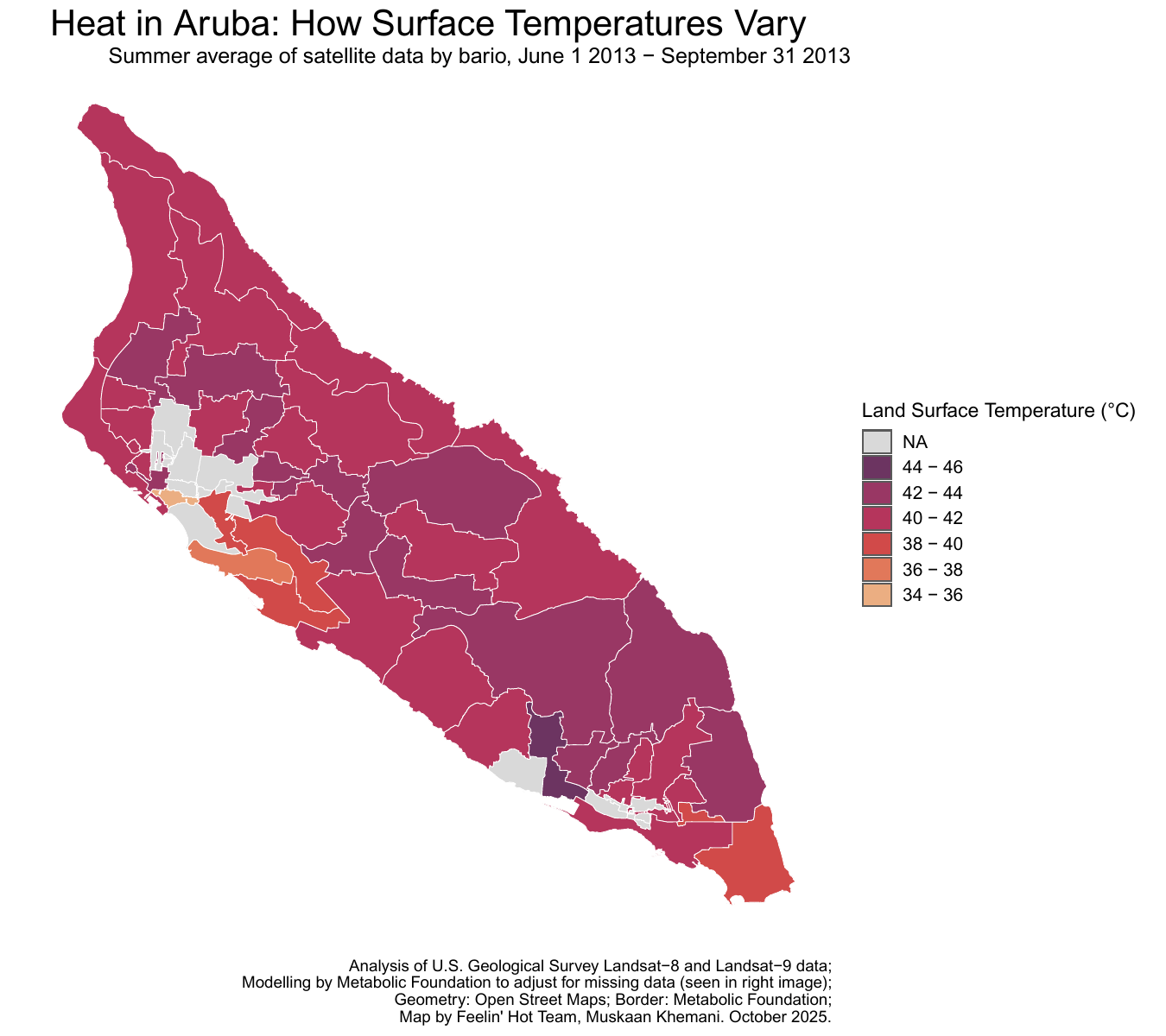 This map shows the distribution of heat across Curaçao’s barios (neighborhoods) over 12 years.